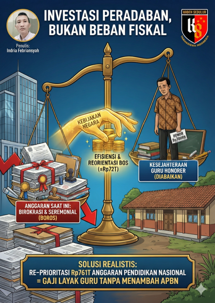 Dalam perspektif kebijakan publik, kesejahteraan guru bukan beban fiskal, melainkan investasi peradaban.